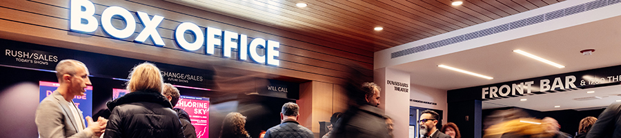 Our Balcony Bar is located on Floor 2. It is open before the show begins as well as at intermission (if there is an intermission). Drinks and snacks are available for purchase here and may be brought into the theater. Be sure to check out our Steppenwolf History Wall when up here!