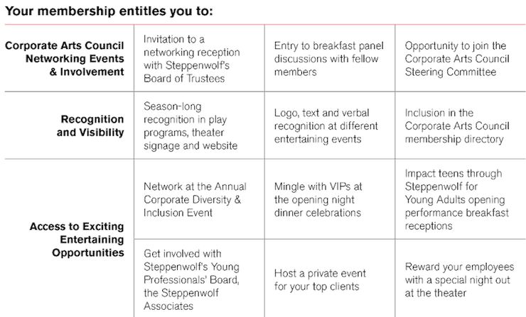 Steppenwolf invites you to join the Corporate Arts Council – bringing together a community of smart, innovative companies to connect in a unique, exciting environment.