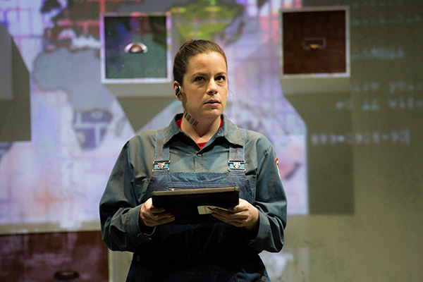Photos of Steppenwolf for Young Adults' production of George Orwell's 1984. The play was adapted by Andrew White and directed by Hallie Gordon. Casting includes Matthew Abraham, Atra Asdou, Lance Baker, Elizabeth Birnkrant, Manny Buckley, Dennis Grimes, Tyrone Phillips and Adam Poss.Elizabeth Birnkrant