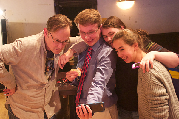 On Saturday, November 7, teens from across Chicago gathered at Steppenwolf Theatre Company for the Young Adult Council hosted event The Scene: George Orwell's 1984. They gathered together for a night of activities, artistic discussion and dancing inspired by the Steppenwolf for Young Adults’ production. The theme of the event was, “What’s your rebellion?”<i>1984</i> cast member Lance Baker poses for a selfie with guests