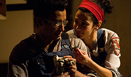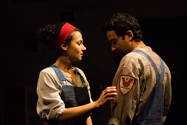 Photos of Steppenwolf for Young Adults' production of George Orwell's 1984. The play was adapted by Andrew White and directed by Hallie Gordon. Casting includes Matthew Abraham, Atra Asdou, Lance Baker, Elizabeth Birnkrant, Manny Buckley, Dennis Grimes, Tyrone Phillips and Adam Poss.Atra Asdou and Adam Poss