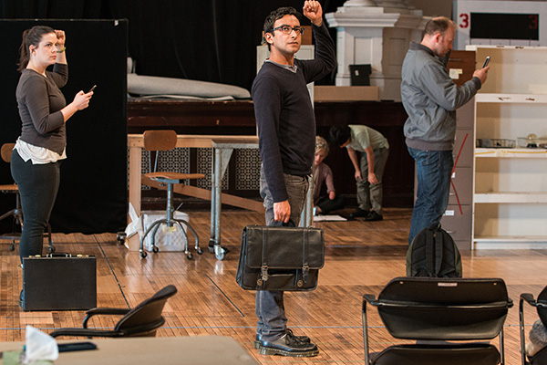 Rehearsal photos of Steppenwolf for Young Adults' production of George Orwell's 1984. The play was adapted by Andrew White and directed by Hallie Gordon. Casting includes Matthew Abraham, Atra Asdou, Lance Baker, Elizabeth Birnkrant, Manny Buckley, Dennis Grimes, Tyrone Phillips and Adam Poss.Matthew Abraham and director Hallie Gordon
