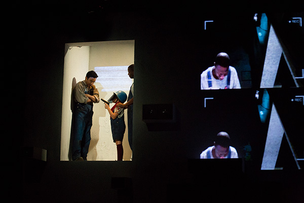 Photos of Steppenwolf for Young Adults' production of George Orwell's 1984. The play was adapted by Andrew White and directed by Hallie Gordon. Casting includes Matthew Abraham, Atra Asdou, Lance Baker, Elizabeth Birnkrant, Manny Buckley, Dennis Grimes, Tyrone Phillips and Adam Poss.Matthew Abraham and Adam Poss