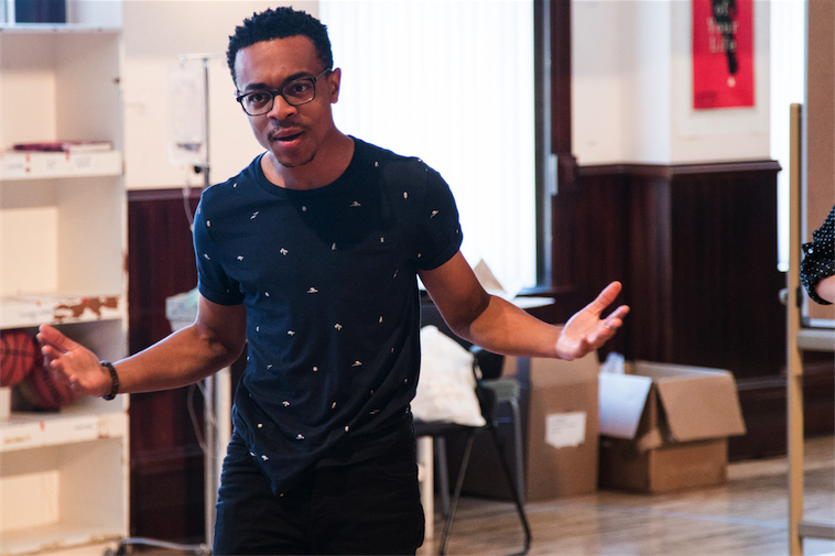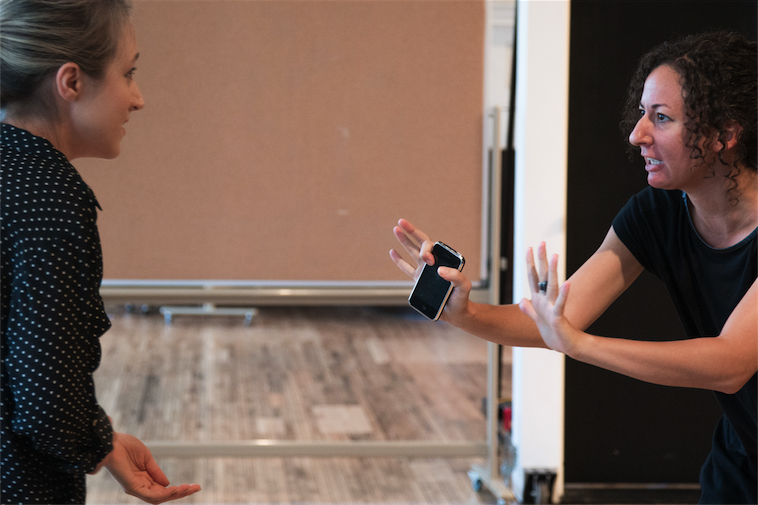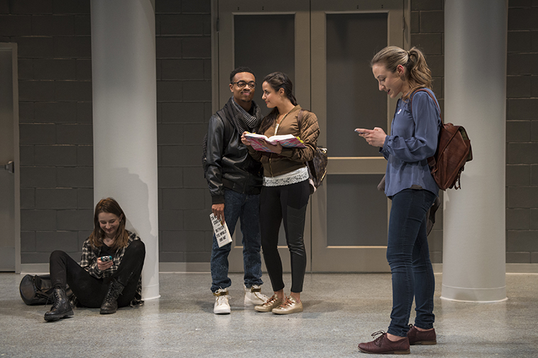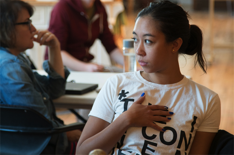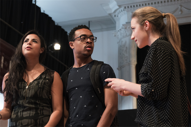 Rehearsal for Steppenwolf for Young Adults’ production of The Burials, a world premiere by Caitlin Parrish, directed by Erica Weiss.